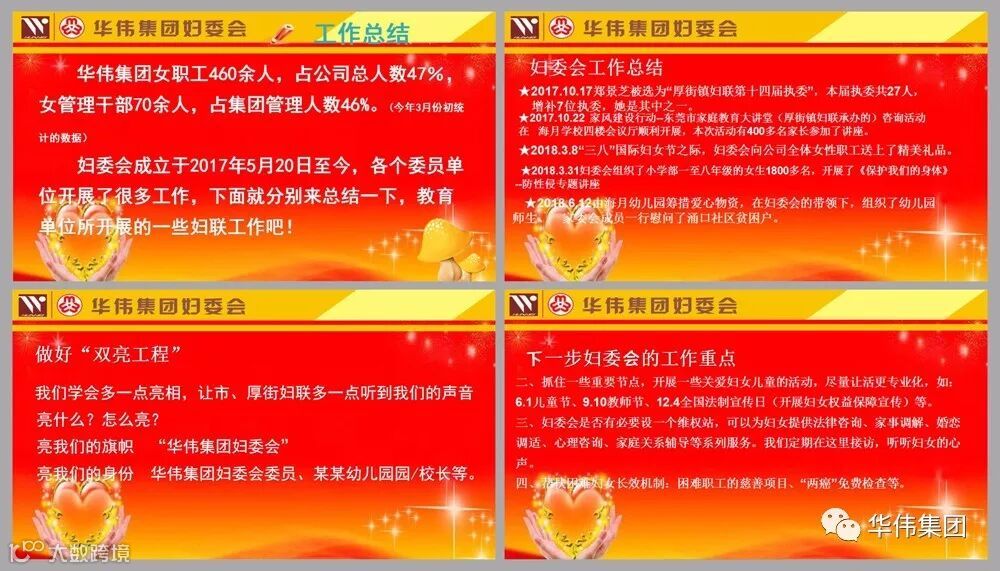 据郑主任介绍,后续华伟集团妇委会将持续开展委员培训会议,进一步用知识武装委员大脑,促进华伟集团妇委会各项工作科学、健康、有序开展,带领广大妇女职员工在新的时期为华伟事业的发展作出更大的贡献!