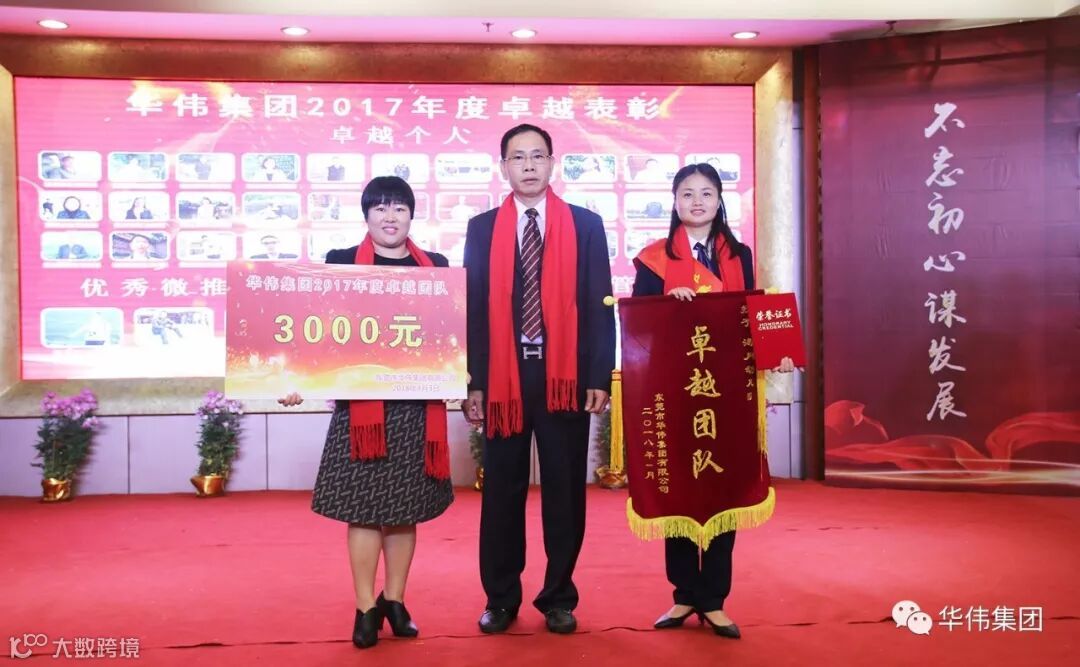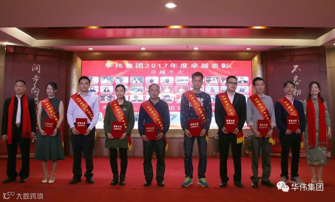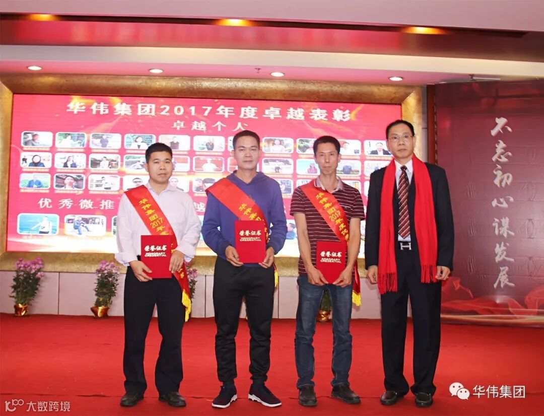 华伟集团公司黄锦斌总经理(左一)为2017年度“优秀微推奖”获得者颁奖