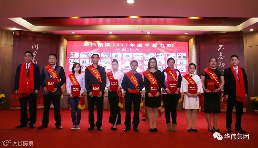 集团公司董事长秘书张松涛(右一)、集团公司党支部书记李稳有(左一)为华伟集团2017年度“卓越个人”颁奖