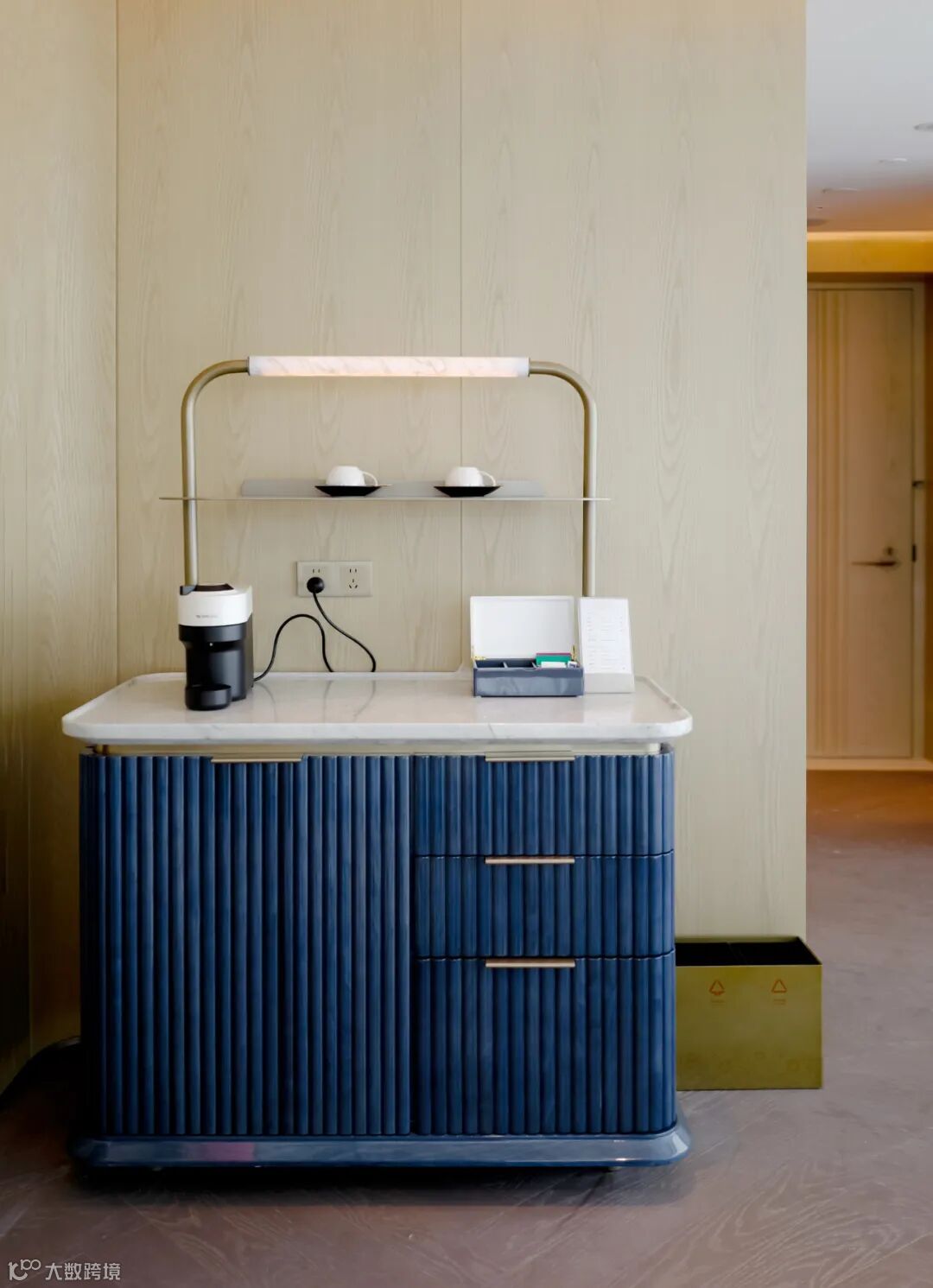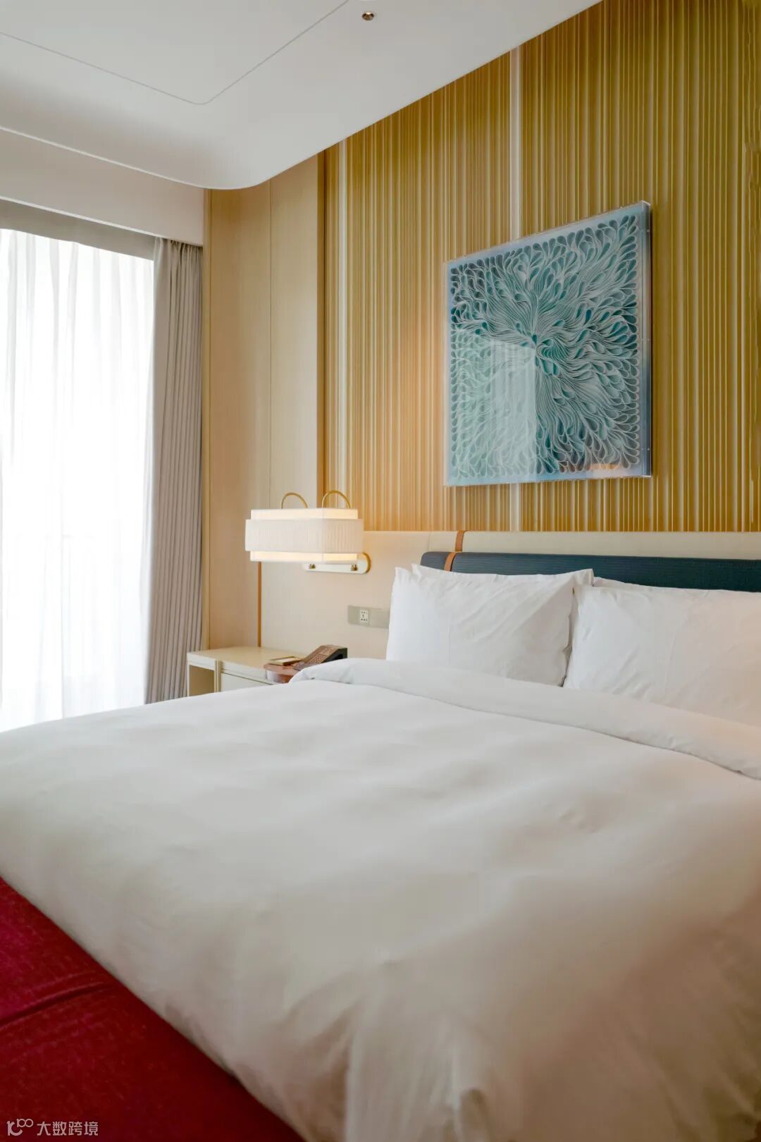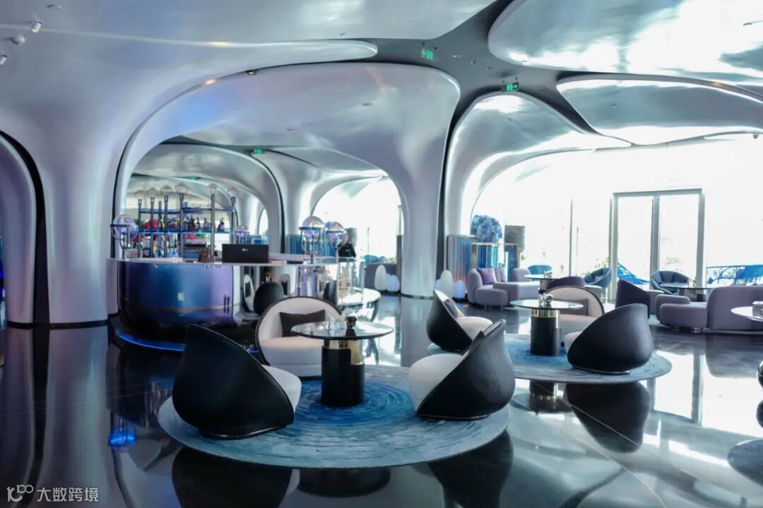 大堂及大堂吧以“天幕·海幕·蓝幕”为设计灵感,分别取意深圳这座城市:充满生机的天之骄子,向海而生、因海而兴的海洋文化,以及浪淘梅沙、海天一色的绝佳山海景观,天花及墙体采用白色幻彩瓷化膜,独特的设计风格,当阳光照射时,便会呈现出魔幻流动的光影效果,营造出时尚动感的氛围。