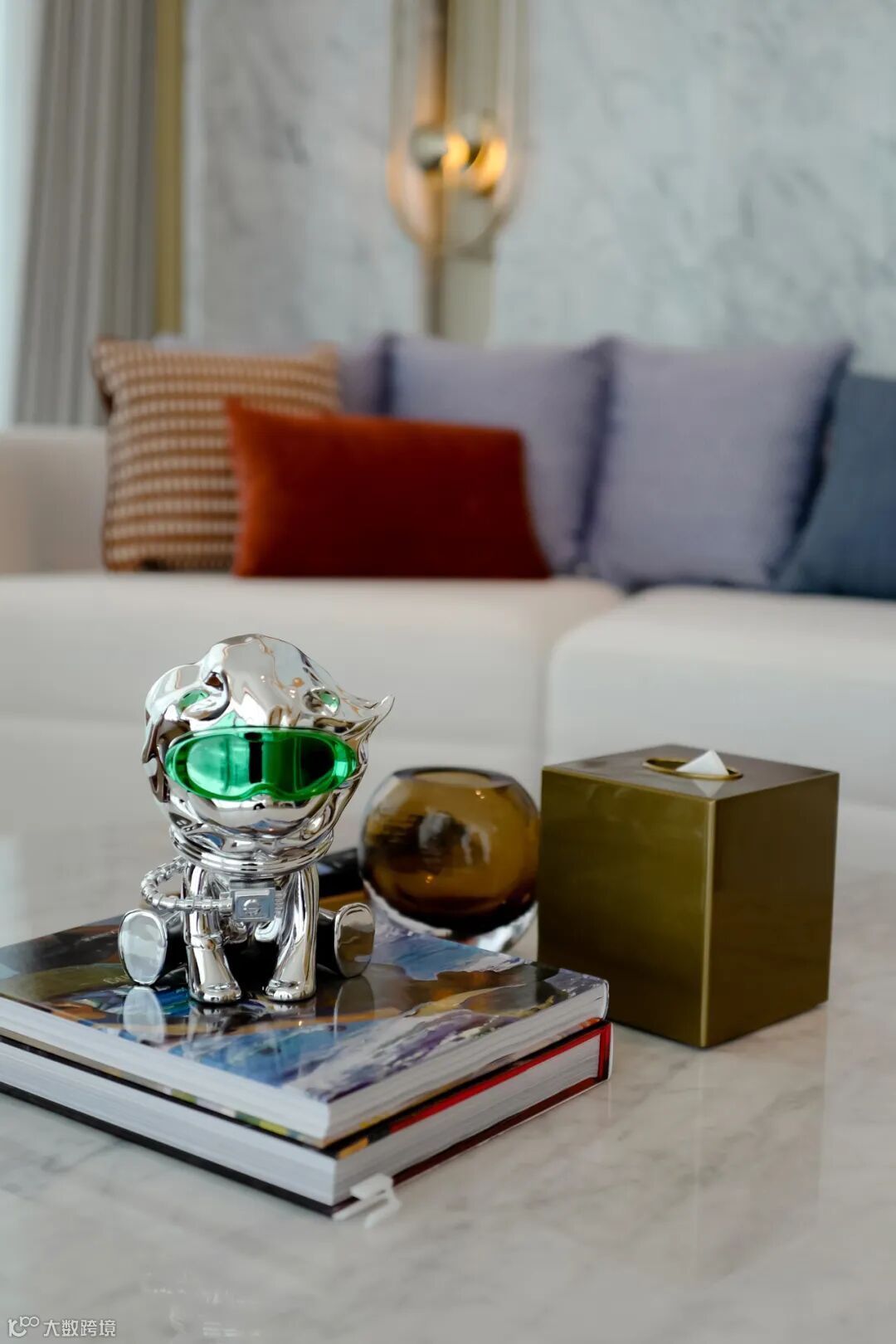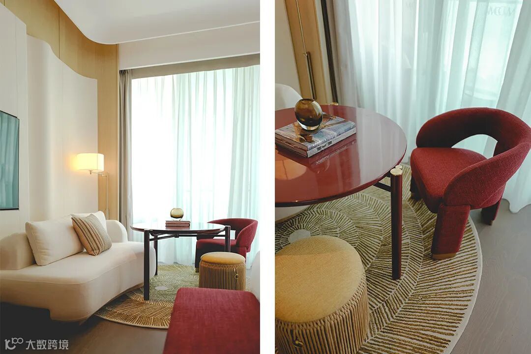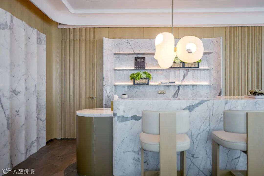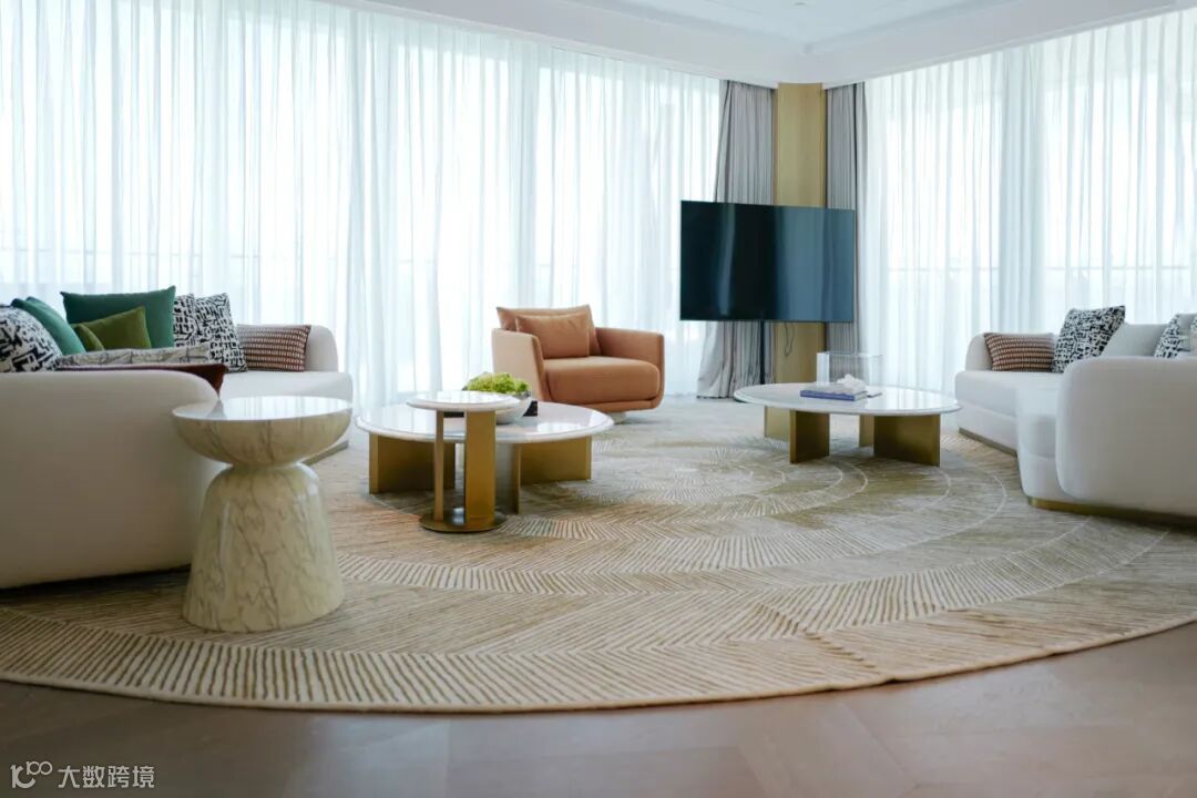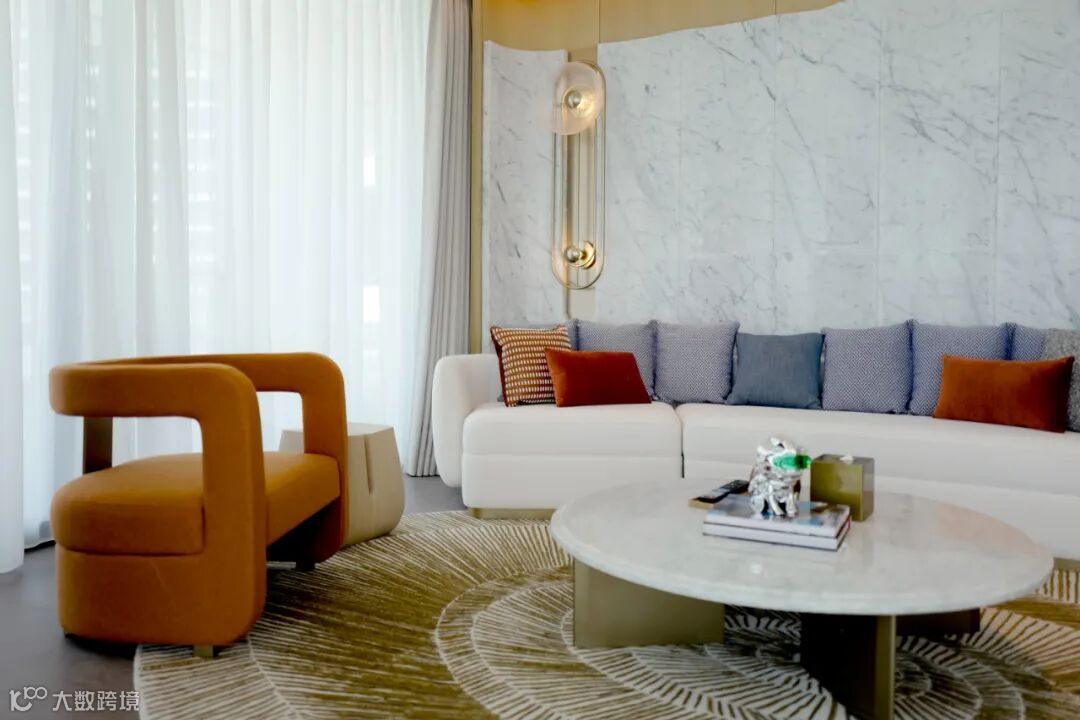 本案为现代极简奢华设计风格,以白色,原木色为主基调,以灰、蓝、红、咖啡棕等色调为辅,作为点缀装饰,以增加空间的层次感和活力,并融入了深圳特有的海洋文化元素;墙面装饰大量运用原木色波浪木纹、弧形转角造型;独特的悬浮式吊顶及采用无主灯设计,简约又时尚;简洁流畅的线条设计,纯粹的色彩搭配,大理石、金属等材质的运用以及细节的工艺处理,无不彰显极简风格的精髓,注重功能实用性的同时,追求形态与功能的完美结合,整体在视觉感受上体现了一种清新自然,舒适雅奢的氛围,与酒店的整体设计完美融合。