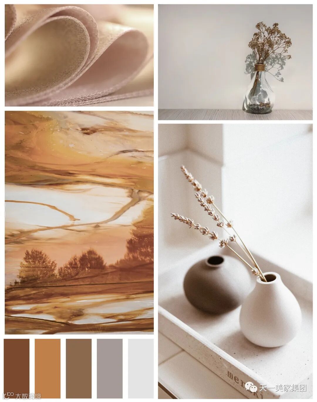 淡雅轻松的暖棕与粉灰色能营造自然、