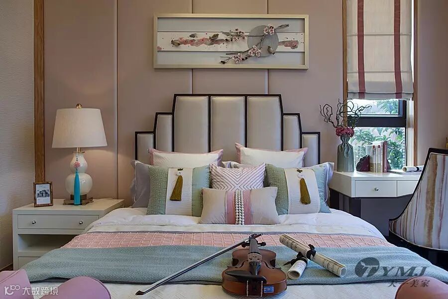 中国传统色谱中蕴含着中国高尚生活的符号意象,女孩房浅灰而略带微红的藕色,清澈明澄的水绿色纺织品的运用,让空间显现淡雅静谧的气质。