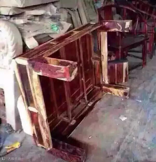 这些越南所谓的红木家具,并不是按照传统的工艺,以严格的比例尺寸和卯榫结构来制作,而用胶水粘贴和金属连接,过上三五年,木头和金属就会互相排斥分离。