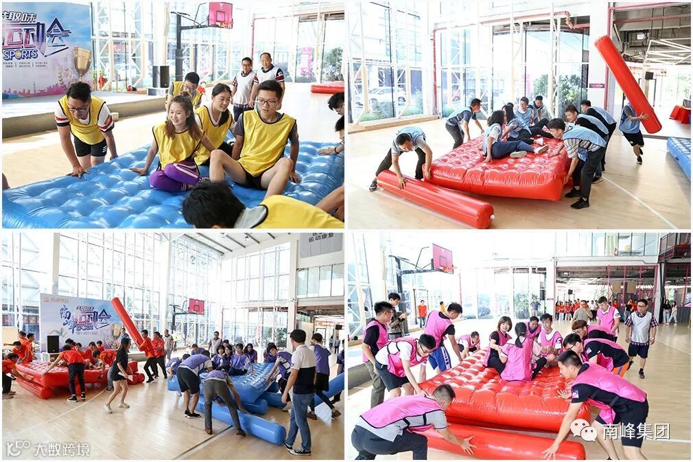 “一声响起万里城,全民运动南峰杯”,随着领导们按响发令喇叭,本次“南峰杯”趣味运动会正式拉开帷幕。本次运动会共设置了6个比赛项目,它们分别是“同心协力竞走”、“疯狂毛毛虫”、“运转乾坤球”、“车轮滚滚”、“无敌风火轮”和“绑腿跑”。比赛时两两队伍共同竞赛,从第一个项目的起点开始计时,直到完成最后一个项目时进行总时长统计,按用时最少排名得出冠亚季军。