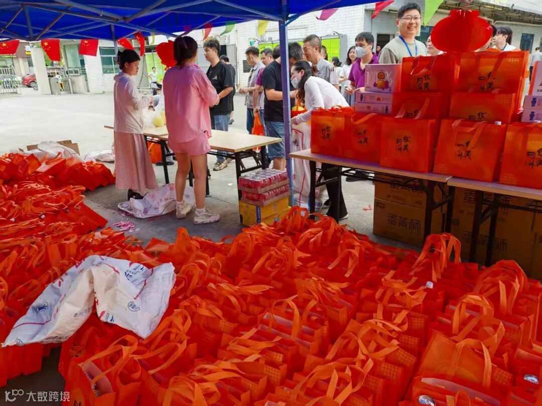 再看福利 “阵容”:圆润饱满的柚子堆成小山,解暑饮品整箱摆放,还有蛋黄酥礼包满满当当……