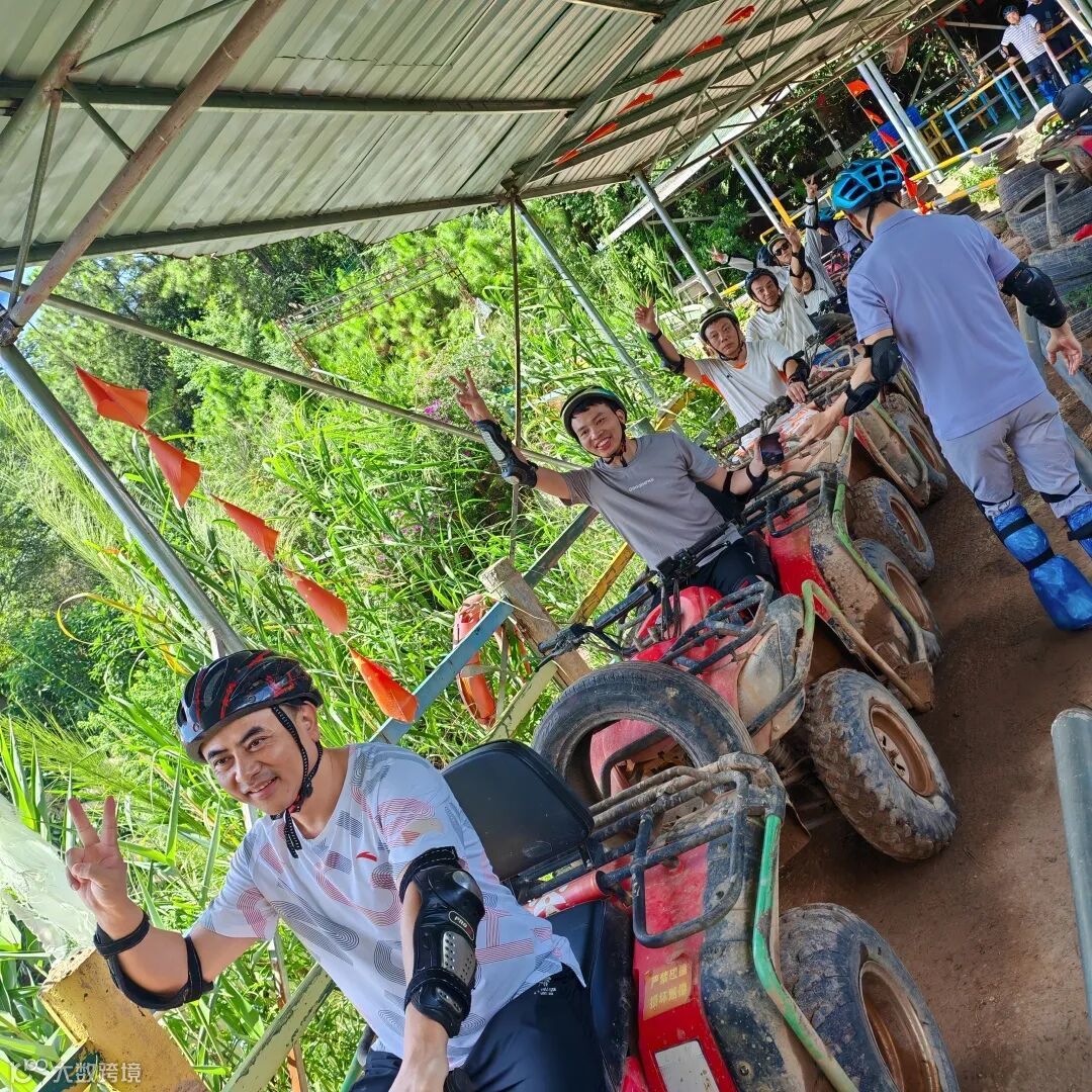 大家奔赴 ATV 越野场地。当全员穿戴好头盔、护具,望着排列整齐的越野车辆,兴奋与期待瞬间被点燃。驾驶 ATV 穿梭于崎岖山道,引擎轰鸣和林间清风交织成独特的 “冒险乐章”;泥泞的轨迹、起伏的路况,既是对勇气的考验,也是团队协作的 “试炼场”—— 成员们或相互鼓励尝试,或分享驾驶技巧,在刺激的越野体验里,不仅释放了工作压力,更培养出面对挑战时的默契与担当。