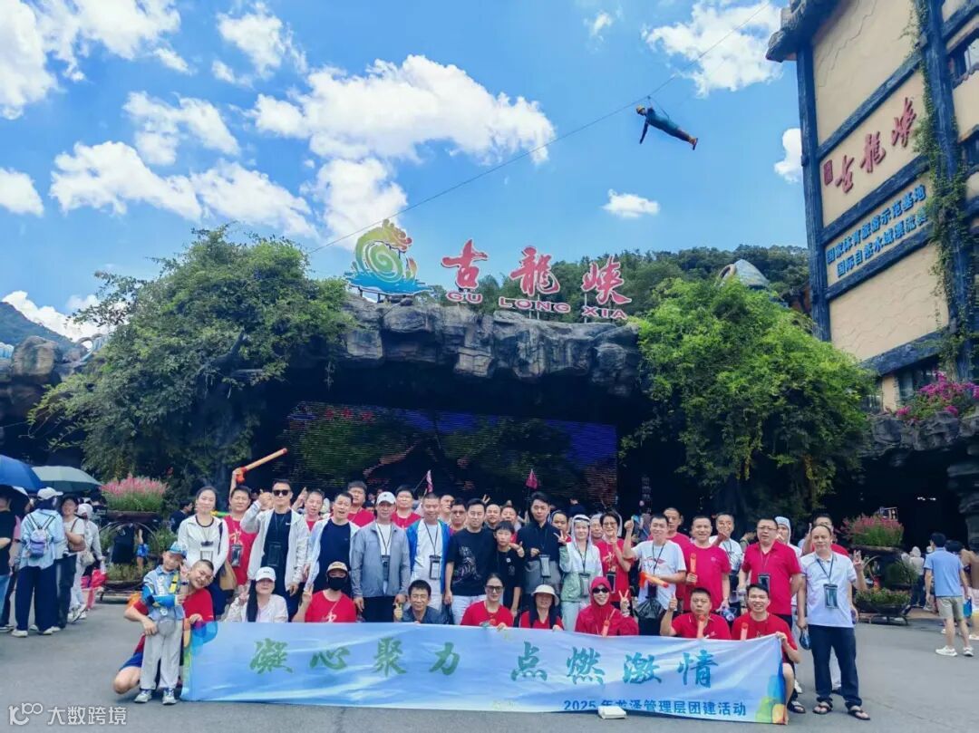 团建的核心,是 “人” 与 “团队” 的联结。古龙峡景区入口处,全员簇拥在团建活动”的横幅前,笑容灿烂、意气风发;瀑布景观前,大家并肩而立,以青山绿水为幕,留下满载活力的集体身影…… 每一张合影,都是 “心往一处想、劲往一处使” 的生动注脚。