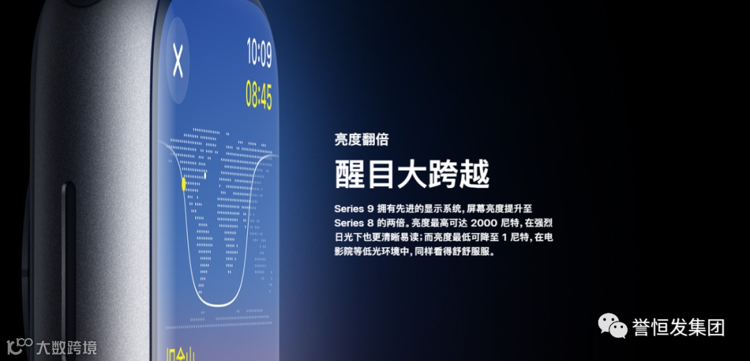 然后是WATCH SERIES 9这款是迄今最强大的芯片,拥有不点屏幕就能操控Apple Watch 的新绝技,亮度提升至两倍的显示屏。