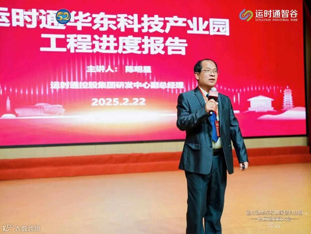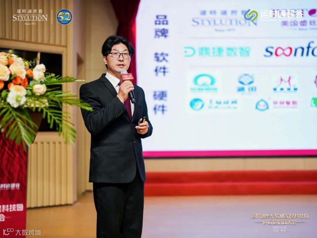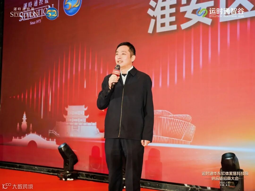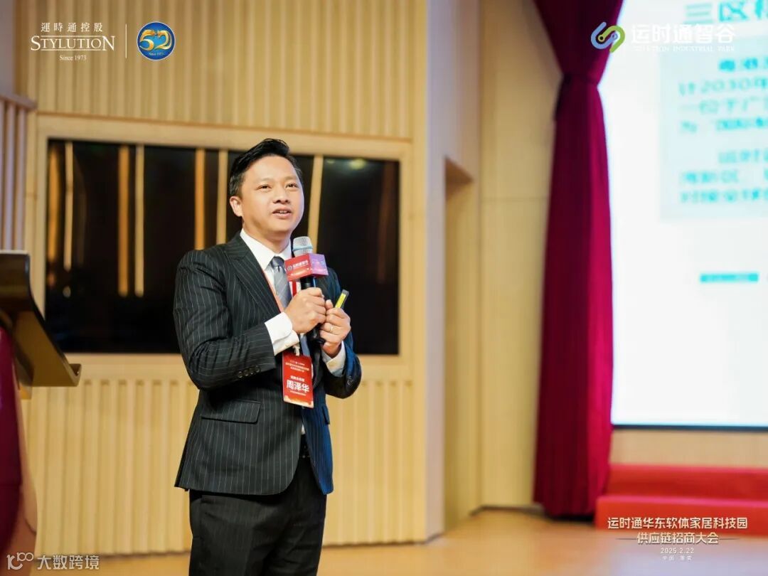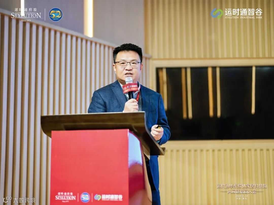 运时通控股集团研发中心副总经理陈明星在淮安运时通智谷招商暨供应链大会主题演讲中,深入分析了当前软体家居行业的发展趋势与市场机遇,全面解读了淮安运时通智谷的战略规划、产能布局以及供应链合作模式。