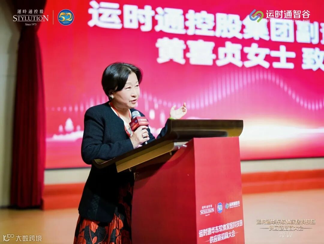 运时通控股集团副董事长黄喜贞在大会中发表致辞,她强调了运时通控股集团通过构建高效供应链体系,持续推动品牌与产品创新的决心,同时分享了运时通以智能化、个性化为驱动,引领软体家居行业迈向更高品质的发展道路,为与会嘉宾描绘了一幅合作共赢、共创未来的宏伟蓝图,激发了供应链上下游企业携手共进的强烈共鸣,激励着每一位与会者以更加坚定的步伐,携手并进,共创新的辉煌。