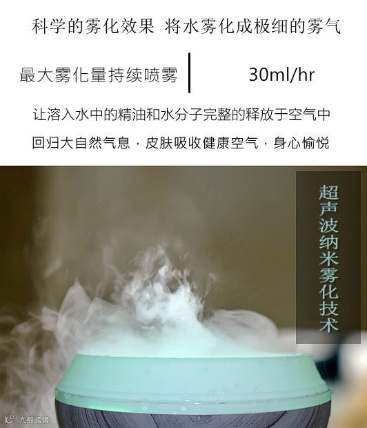 超声波香薰机:超声波香薰机专为精油运用者设计,机体内可加入纯净水、纯植物精油。在添加了精油之后,不仅能够增加空气湿度,还能够散发出香薰分子净化空气的作用。 配合产品渐变舒缓的色疗灯光,可随时随地进行香薰芳疗养生、消毒杀菌、空气净化、加湿、室内装饰等用途,不受任何季节的影响,尤其在干燥及空调室内环境中使用更佳。