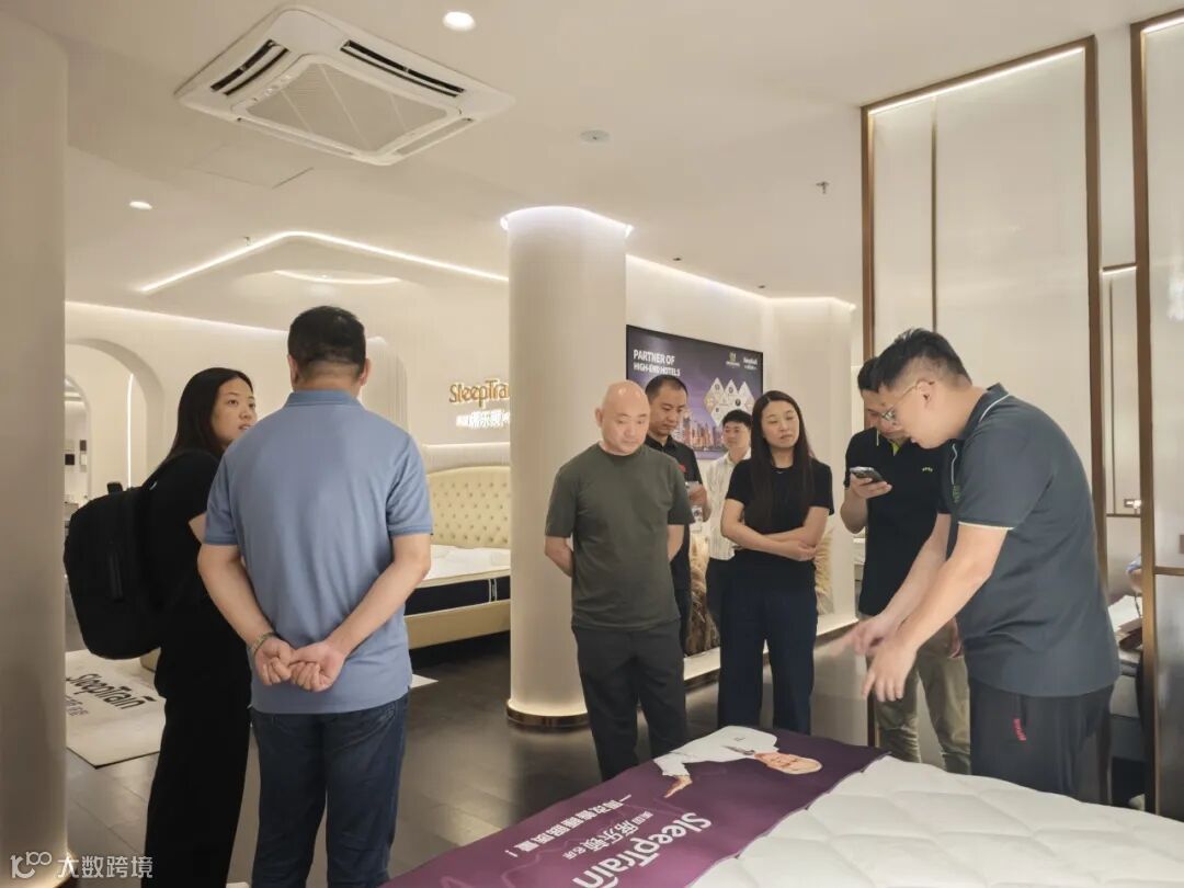 景海龙总经理一行参观蕾丝床垫展厅,美国蕾丝床垫事业部宋杰总经理介绍蕾丝床垫的产品设计理念,始终致力于呵护消费者的睡眠健康,将以差异化的定位注重满足不同消费者的个性化需求。
