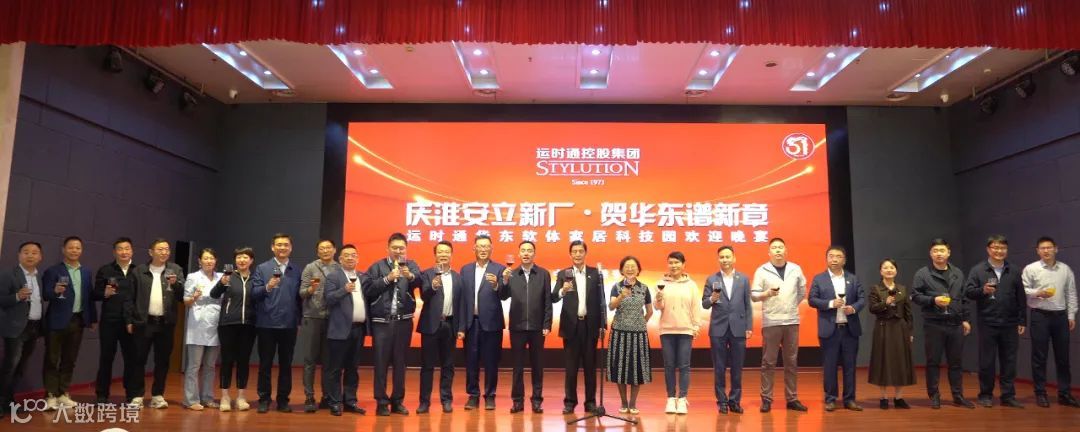 5月5日晚,江苏省淮安市淮安区委书记颜复,淮安区委副书记、区长邓萌,淮安区委副书记、副区长郭玉振,淮安区委常委、淮安经济开发区党工委书记朱亚,淮安区副区长郭秋香、淮安经济开发区管委会主任房乃发、中国国际商会家居建材产业委员会秘书长文锋、淮安工行楚州支行行长唐志远、农行行长张洪波、宁波德克德家董事长赵庆秋、月星家居集团苏北区总经理丁小华、淮安瑞林红星美凯龙总经理徐成勇、运时通控股集团董事长陈燕木、副董事长黄喜贞、总经理陈冠宇、总经理陈冠翰等领导嘉宾出席运时通华东软体家居科技园欢迎晚宴,大家齐聚一堂,热情交流,共叙情谊,为淮安新厂项目启动喝彩,现场气氛热烈。