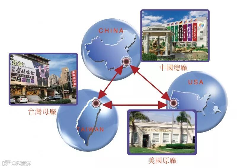 运时通控股集团拥有製床经验丰富,提供客製化优质服务的台北母厂;占地20万平方米,生产全系列民用及商用家具的中国总厂;以及不断研发创新科技,讲究天然环保观念的美国原厂。三大生产基地,横跨宽度近两万公里的太平洋,形成一个结构完美的“跨太平洋供应链Supply Chain Across the Pacific Ocean”。三大基地整合连结,所产商品销往世界各地,打造一个全球性的「生活健康服务产业集团」。