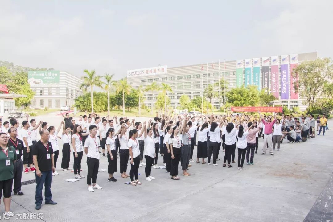 秉承着董事长的《卓越管理修炼艺术》,展示团队聚力行千里的团结精神,队伍参照雁群排列成V(人)字形,意为同心协力,不怕困难,与同伴携手并进“ 一起突破”!
