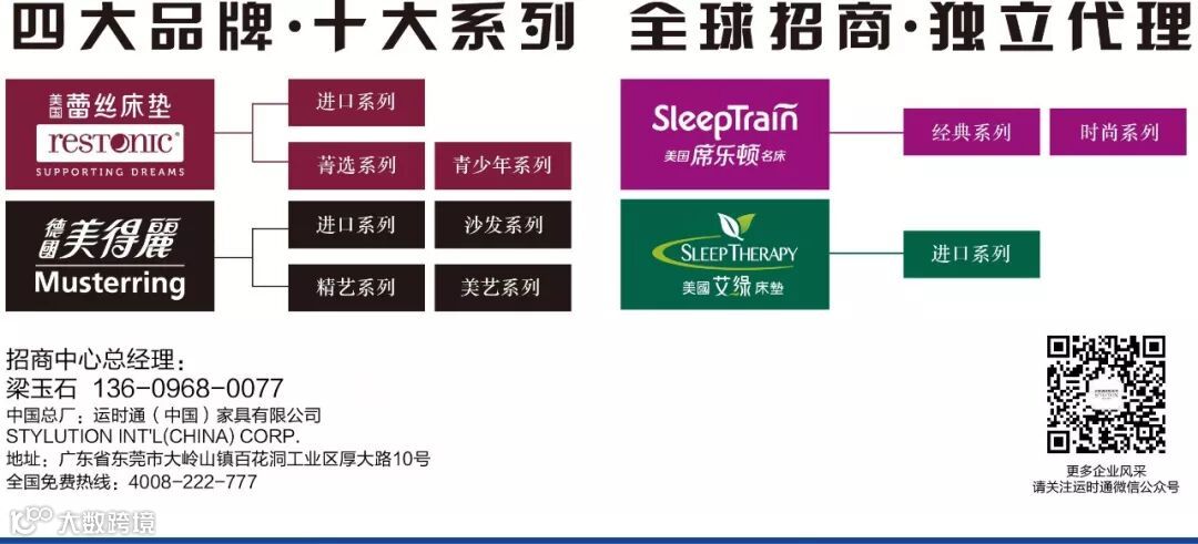 此次展会,中国家居品牌联盟荣誉主席单位——运时通控股集团将在运时通睡眠馆为大家展现美国蕾丝进口形象与德国美得丽进口形象,带来一场美式与德式齐聚的床品家居盛宴。
