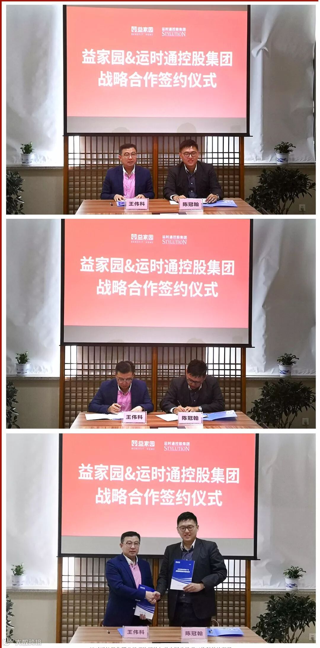 运时通控股集团总经理陈冠翰先生与益家园总经理王伟科先生签约