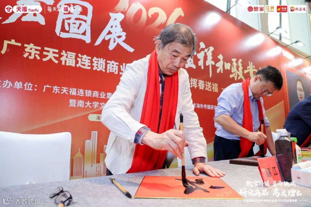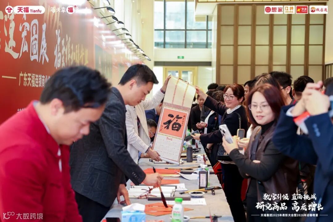 晚宴期间,天福集团携手暨南大学中华书画艺术海外传播研究院、暨南大学文学院校友会等单位,共同举办挥春送福活动,以笔墨传情为全体同仁送上新春祝福,让年味与温情在现场交融。