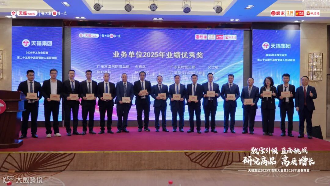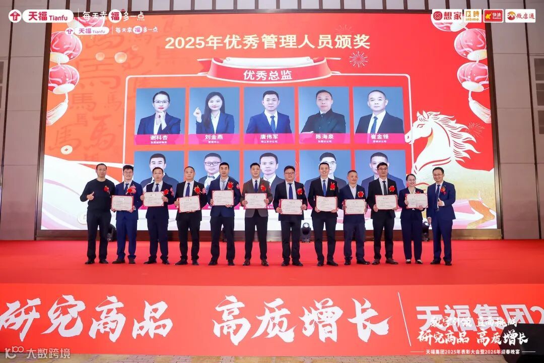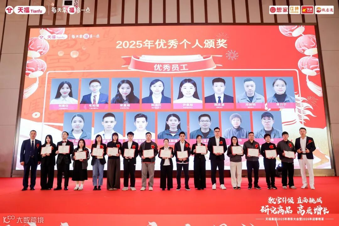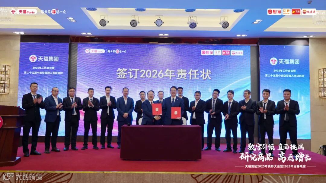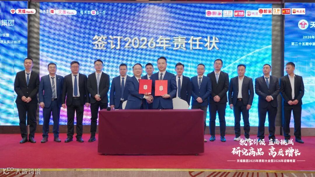 新的一年,承载着战略蓝图、专业力量、榜样精神与文化温度的天福集团,必将骐骥驰骋、蹄疾步稳,以数字为翼,以奋斗为桨,在新征程上马力全开,赢胜2026,再创辉煌佳绩!