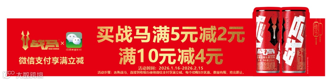 活动期间,消费者在活动门店购买指定战马商品,使用微信支付即可享受“满5元减2元”、“满10元减4元”的即时优惠。每位用户在活动期间限领一次优惠券,优惠名额有限,先到先得。