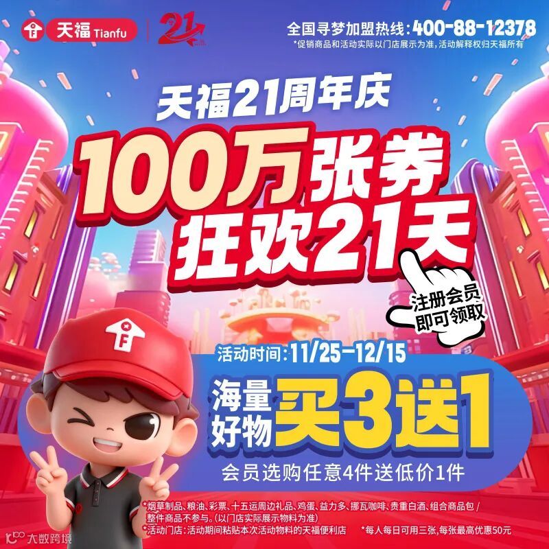 此次周年庆的消费狂欢,不仅体现了天福强大的供应链与商品组织能力,更彰显了其“每天幸福多一点”的品牌初心。天福诚邀广大市民走进身边的天福门店,共同参与这场年度优惠,抓住机会,把实惠与好物一并带回家!