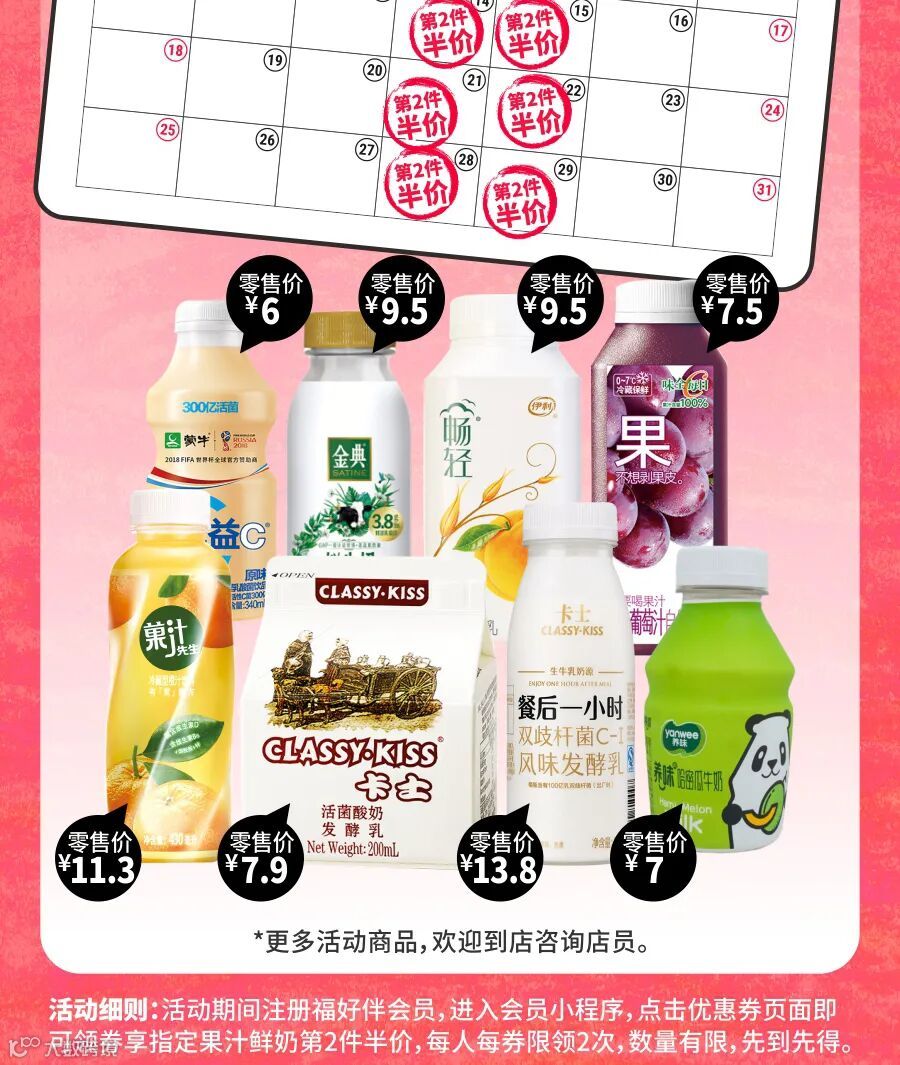 天福开展低温奶同品第2件半价活动