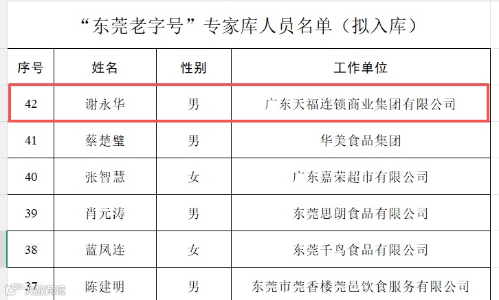 天福集团代表入选“东莞老字号”专家库