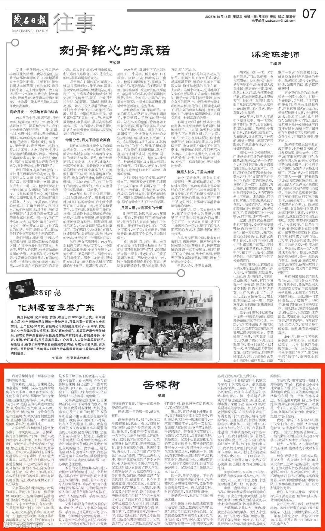 近日,天福员工张培年以笔名 “安澜” 创作的散文《苦楝树》,成功登载于《茂名日报》,用细腻笔触勾勒岁月故事,不仅展现个人文化素养,更折射出天福鼓励员工多元发展、涵养人文精神的品牌氛围。