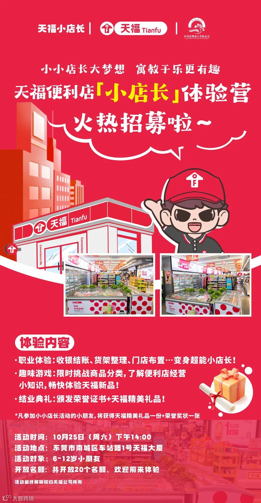 天福集团将联合东莞暨大校友会开展“小店长”体验活动,现已开启招募
