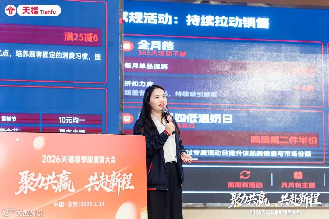 天福集团业务团队代表也为加盟商带来多重福利政策与经营分享:提供订货“三重优惠”,助力抢占春夏季市场;打造2026年招商战略,复数店专属优惠引发全场关注;分享营销与外卖运营干货,提供可落地的实操模板。
