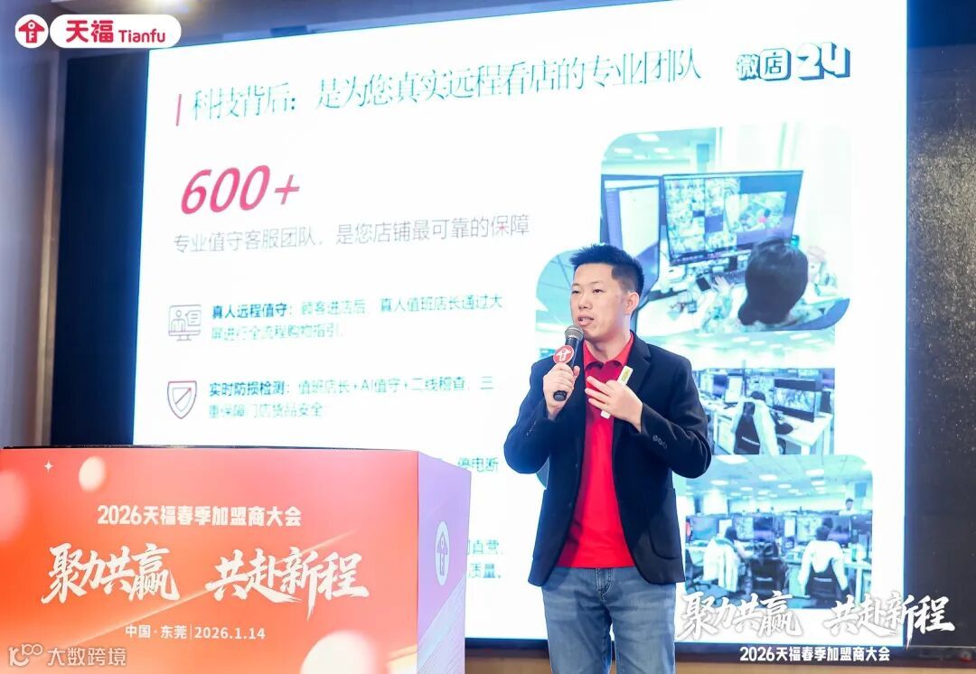 1月14日,2026天福春季加盟商大会在东莞富盈酒店成功举办。本次盛会邀请到广东省连锁经营协会秘书长、天福商学院名誉院长樊飞飞先生,山东国缘酒业集团董事长伊祖军先生,贵州夜郎古酒庄有限公司副总裁佟政先生等嘉宾出席。天福集团常务副总裁成世恩先生率相关管理团队,与500多名加盟商代表共聚一堂,发布重磅福利与赋能政策,为新一年合作注入强劲动力。