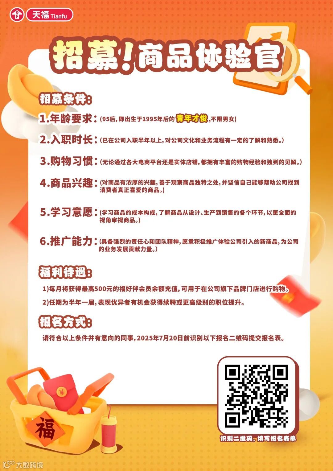 为持续优化商品结构,精准捕捉消费者需求,7月3日,天福正式启动新一期“商品体验官”招募计划,面向公司员工开放申请。