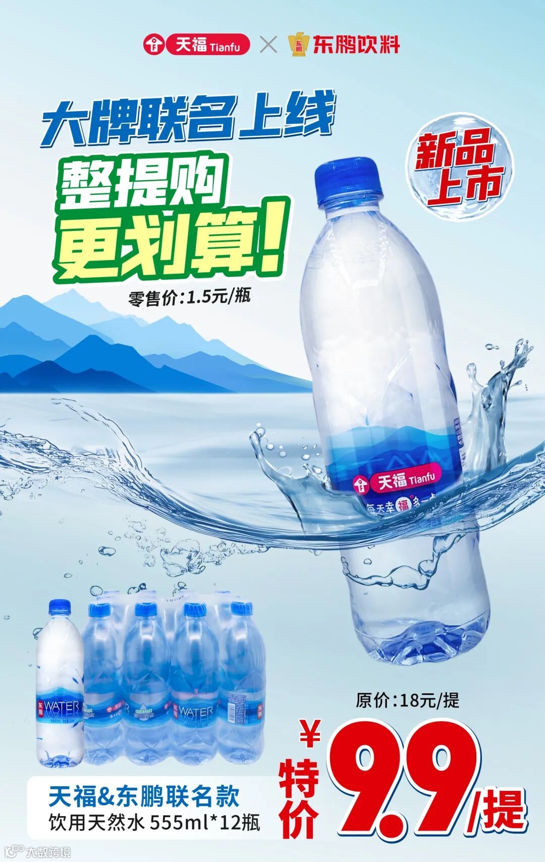 近日,天福与东鹏饮料达成合作,共同推出联名款天然饮用水,以超高性价比登陆天福门店,新品定价亲民,活动期间整提仅售9.9元,为消费者带来健康饮水的超值选择。