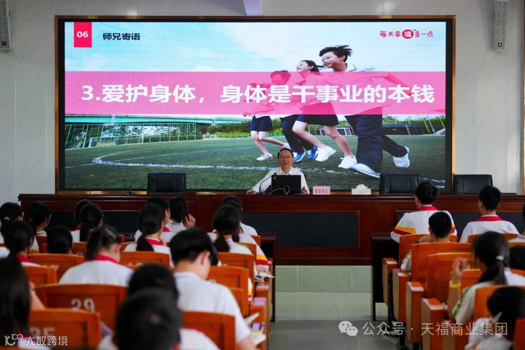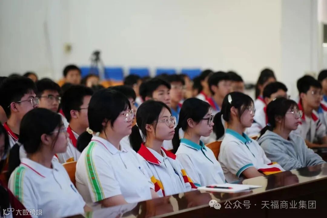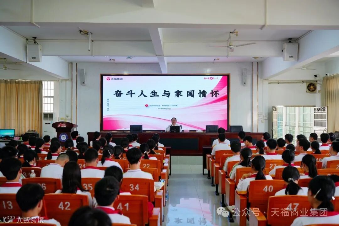 谈及“家国情怀”,欧阳华金董事长目光灼灼:“企业家的价值不在财富积累,而在为社会创造温暖。修路、建校、扶贫——这些不仅是天福的公益行动,更是对‘饮水思源’四字的践行。”达则兼济天下,他从关爱员工、教育情怀、回馈家乡、责任担当谈起对家国责任的深刻理解。回顾了天福集团设立连州中学教育发展基金、捐赠数百万元助力乡村振兴的历程,特别提到2024年捐赠建设的“秦汉·状元桥灯光夜景”项目,“希望这束光能照亮家乡的文化根脉,也照亮学子的追梦之路”。并引用汪国真的诗句激励学子:“既然选择了远方,便只顾风雨兼程。”