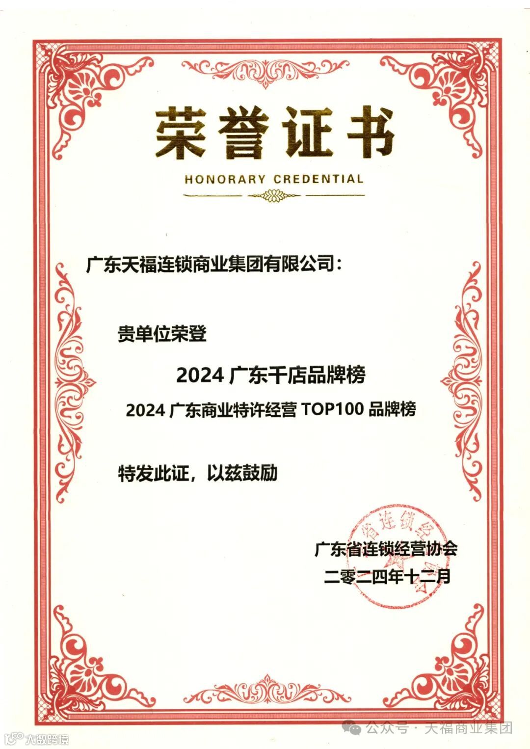 天福荣登双榜 “广东商业特许经营百强榜”、“2024广东千店榜”!