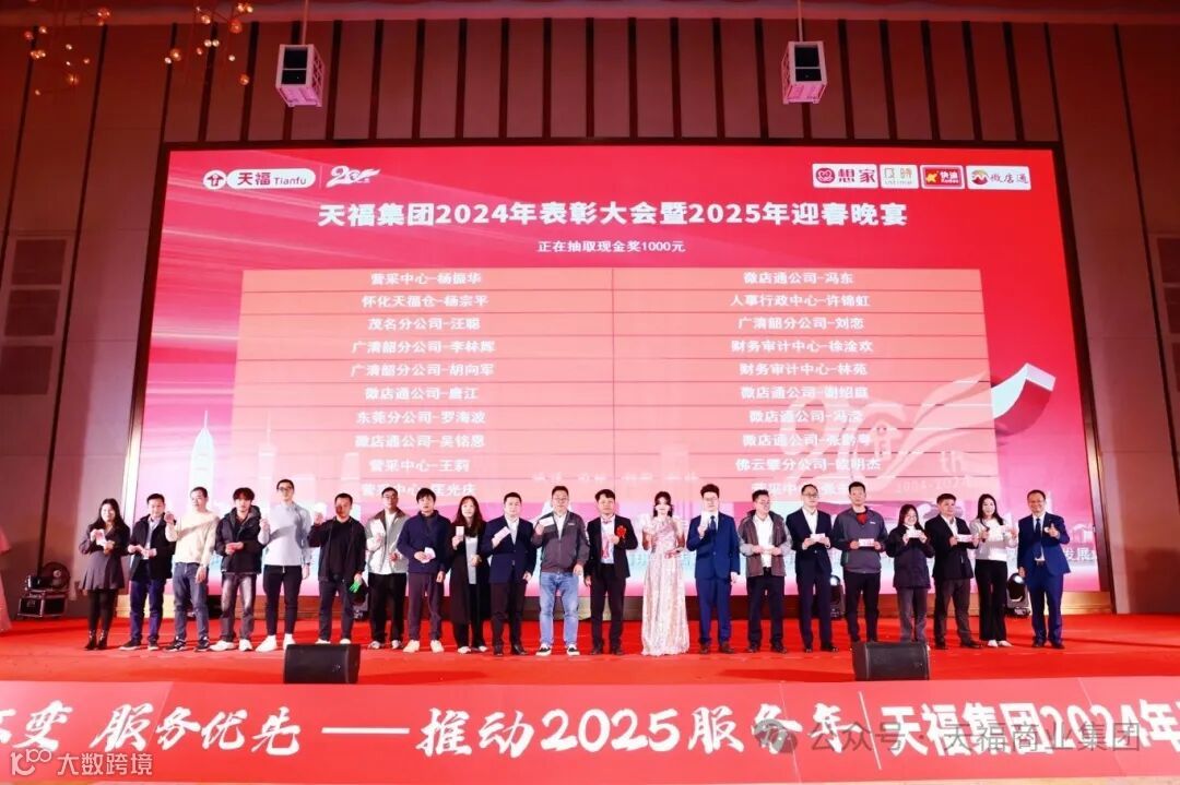 1月14日至15日,天福集团以“业务高速、放价不变、服务优先——推动2025服务年”为主题的工作会议暨迎春晚会隆重举行。天福集团董事长兼总裁欧阳华金先生、2024年度先进个人、优秀门店代表、总部全体员工及各分子公司员工代表700余人齐聚一堂。