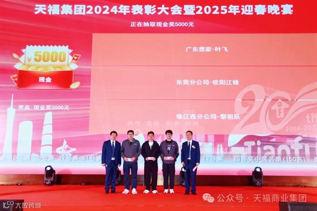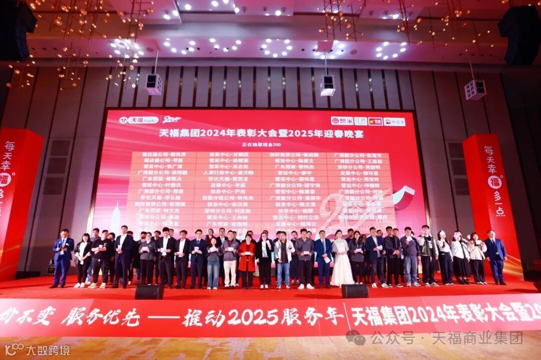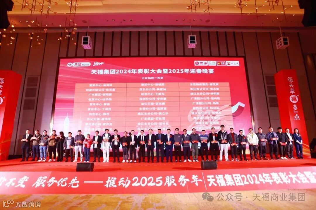 伴随着欢声笑语,天福集团2024年度表彰大会暨2025年迎春晚会圆满落下帷幕。精彩纷呈的迎春晚会,只是天福企业文化的一个缩影。自成立以来,天福一直倡导“为员工谋福利”的企业使命,与员工分享发展成果,让每一位员工都能感受到集团的融洽幸福工作氛围。