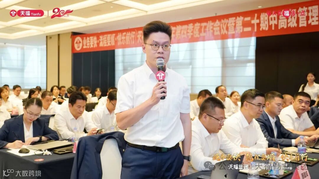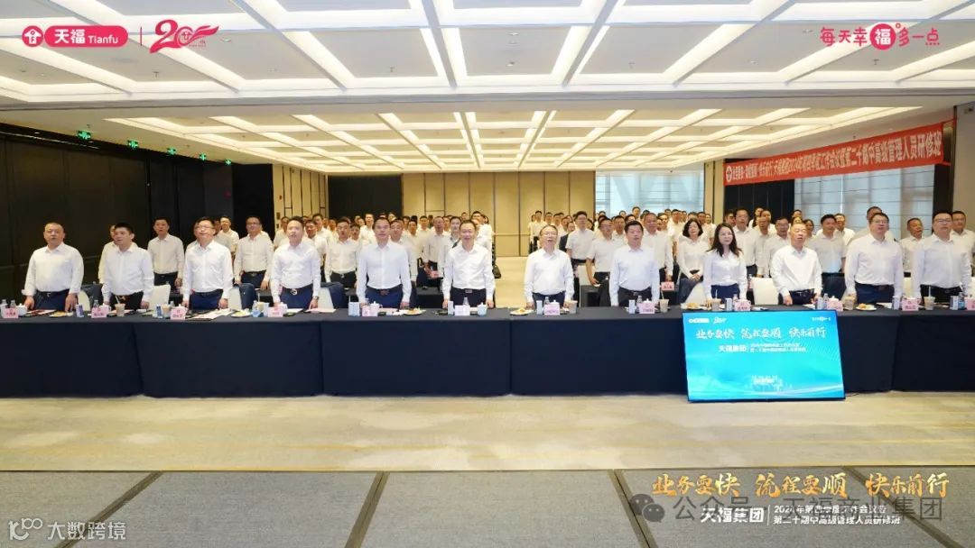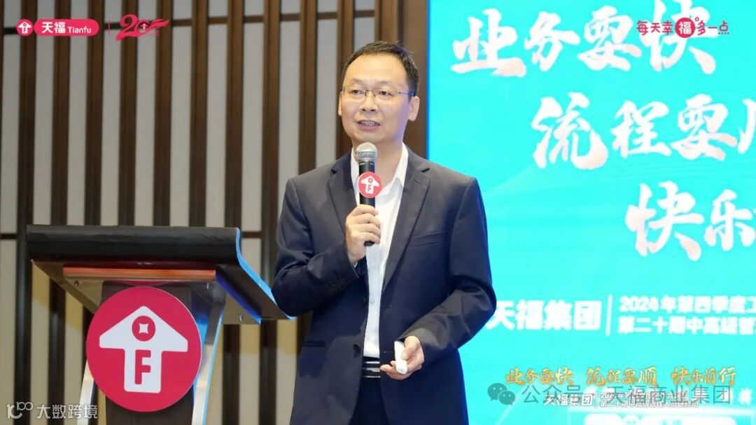 10月15日—10月16日,以“业务要快,流程要顺,快乐前行”为主题的天福集团2024年第四季度工作会议暨第二十期中高级管理人员研修班在东莞洲际酒店顺利举行。天福集团董事长兼总裁欧阳华金出席并讲话。总部及各分、子公司中高层管理人员近150人参加会议。