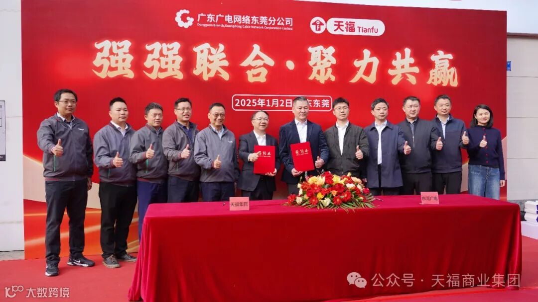 1月2日,在一片喜庆的氛围中,以东莞虎门广电天福店开业为契机,广东广电网络东莞分公司与广东天福连锁商业集团共同举办了“广电&天福”融合厅战略合作签约仪式。广东广电网络东莞分公司党委书记、总经理白阳先生,天福集团董事长兼总裁欧阳华金先生及双方代表出席仪式,共同见证战略合作新篇章的开启!