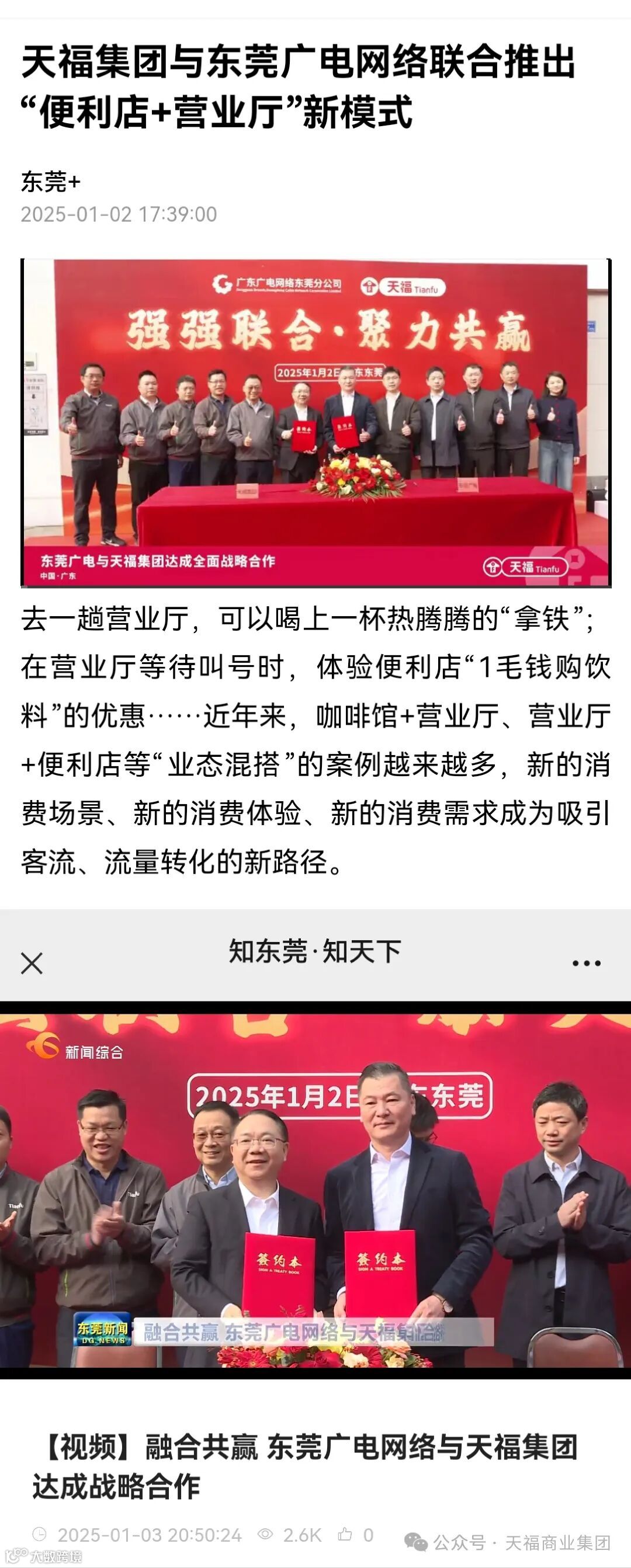 1月2日,东莞广电与天福集团强强联合开展合作,推出“便利店+营业厅”的融合营业厅模式。这一创新举动受到社会的广泛关注,东莞日报、东莞广播电视台等媒体纷纷关注报道,为这此合作点赞。