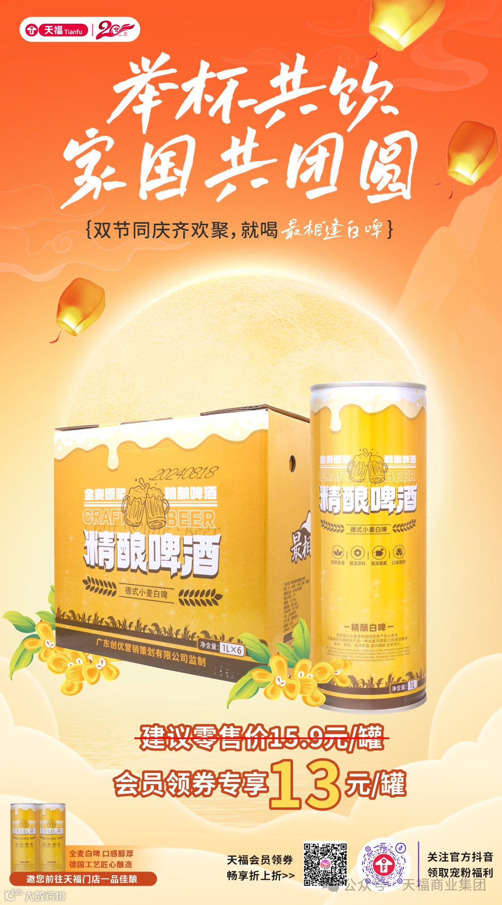 近日,天福集团推出自有品牌最相逢精酿啤酒。最相逢精酿啤酒,结合德国啤酒生产工艺,全麦酿造,饱含浓郁麦香,首次上架便受顾客青睐,争相购买。