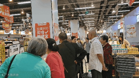 下雨天也无法阻挡大家消费的热情。从年轻情侣到家长小朋友、叔叔阿姨,一家人其乐融融逛超市。