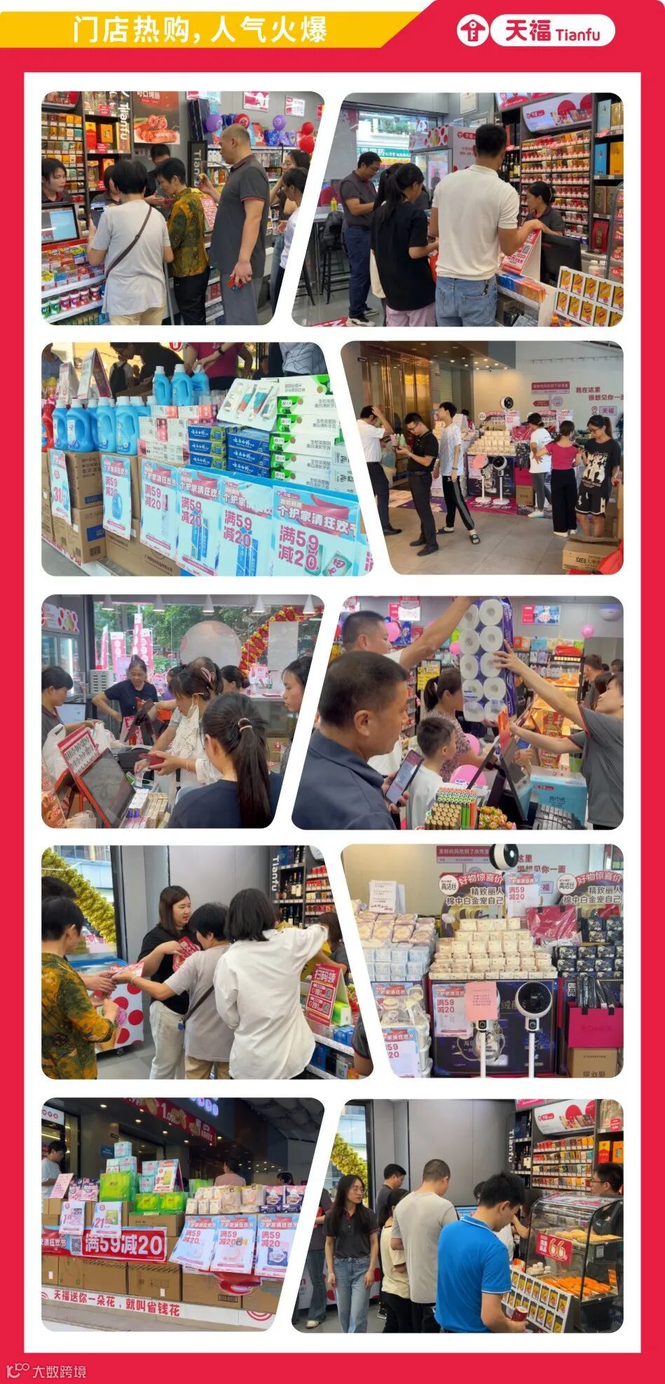 7月1日-7月31日,大牌聚惠,狂撒福利!“大牌爆品直降+海量用品享满减”超值活动,燃动天福门店。店内络绎不绝,人气爆棚。