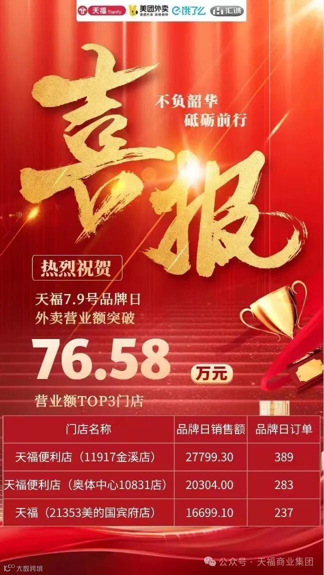 据统计,7月9号外卖品牌日活动当天得到了积极反响,外卖营业额突破76.58万元,为门店创造了可观的经济效益,业绩斐然。该数据也充分印证了即时零售业务的发展潜力与可盈利性。未来,天福集团将进一步加大对门店增值业务的开发力度,更好地赋能门店。
