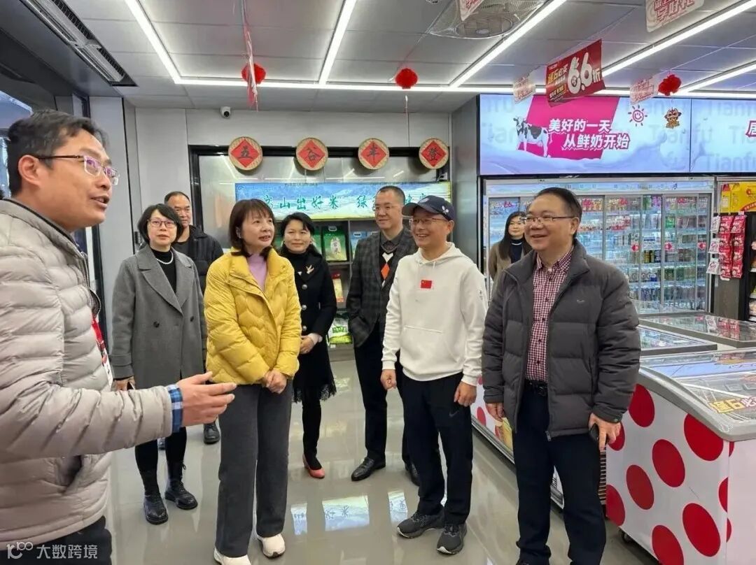 2月27日,东莞市委书记肖亚非带队到天福集团调研,深入了解集团发展情况。调研当天,在天福集团董事长兼总裁欧阳华金的陪同下,肖亚非书记一行首先参观了天福南城先锋1号旗舰店,详细了解门店经营、商品货源和品类、品牌产品研发等情况。