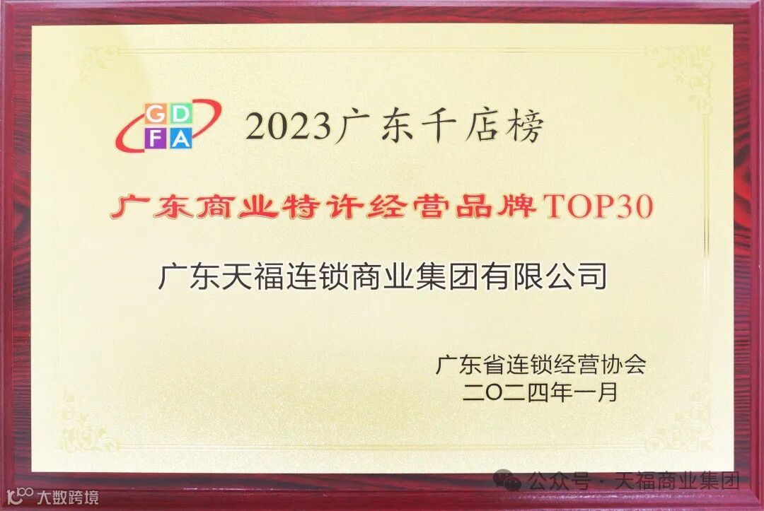 天福集团以其品牌影响力与综合实力荣登2023广东千店榜,并凭借在商业特许经营领域的发展成就与突出贡献,斩获广东商业特许经营品牌TOP30殊荣,充分证明了天福品牌的强劲发展实力与无限发展潜力。