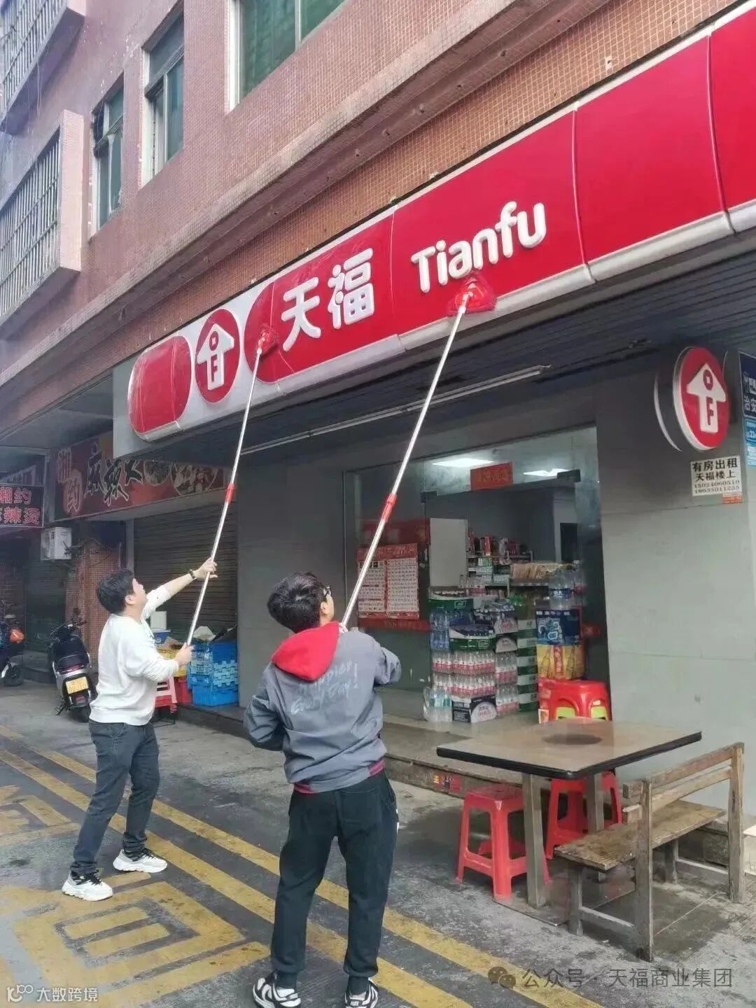 临近新春假期期间,为提升天福门店形象,迎接新春佳节,集团各分公司分别组织开展了招牌清洗活动,收获店主们的一致好评。