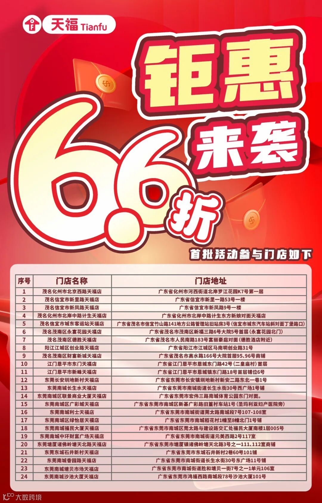时值年末,随着双旦、春节等营销热点的到来,消费市场正在火热升温。近日,为切实提升门店营业额,助力客流提升,天福秉承“好物不贵,多快好省”的理念,在首批活动门店落地“全场海量商品6.6折”活动,通过结合“高质低价好物”与“折扣促销福利”,增强消费者粘性、提升消费频率。