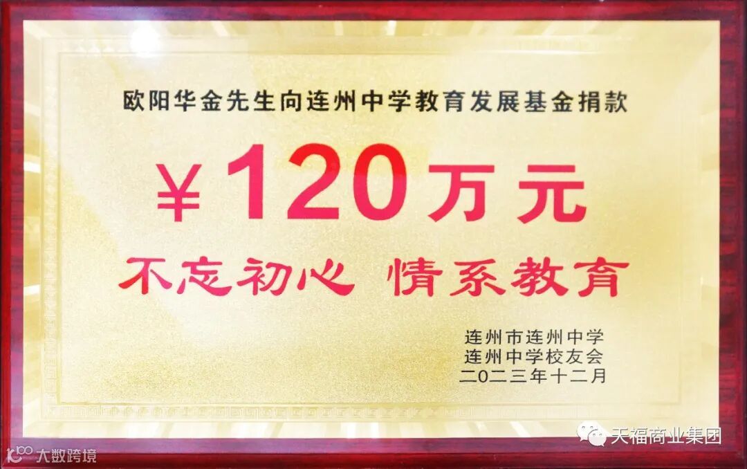 天福董事长欧阳华金捐赠120万元支持连州中学教育发展